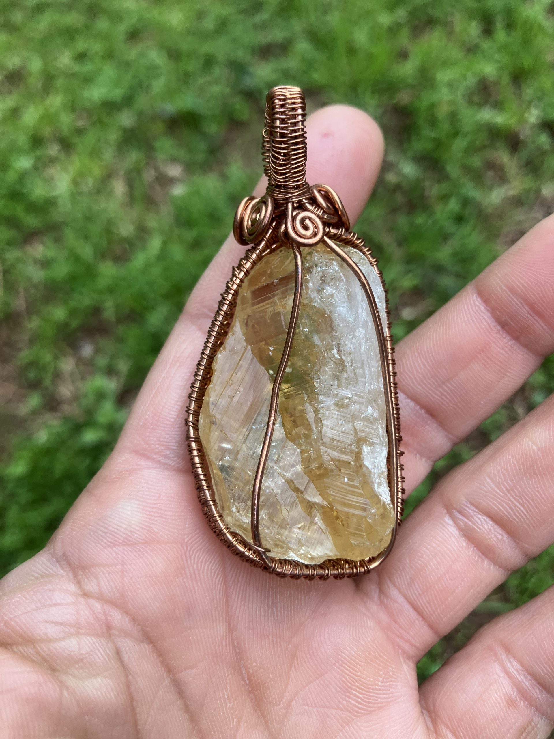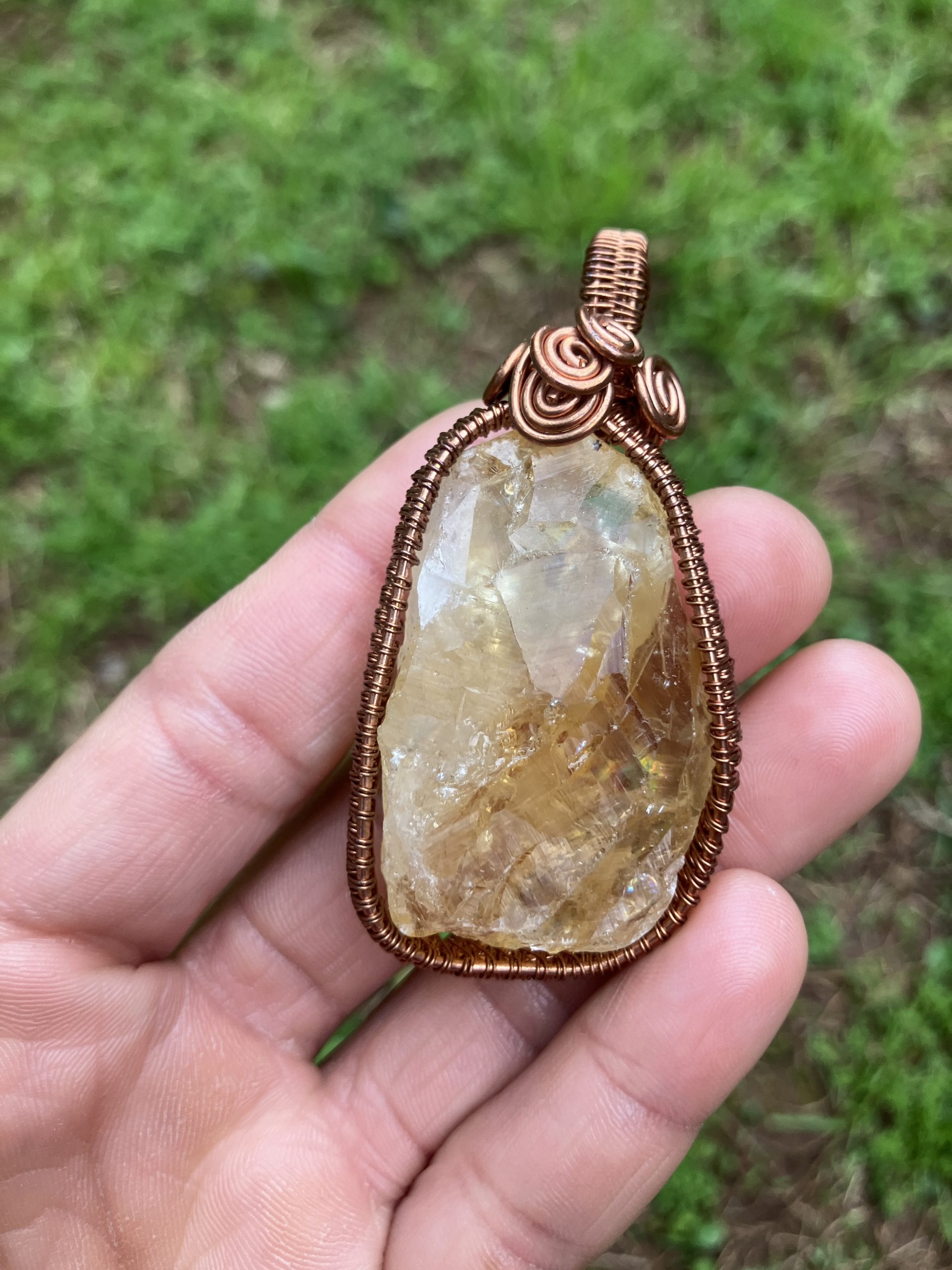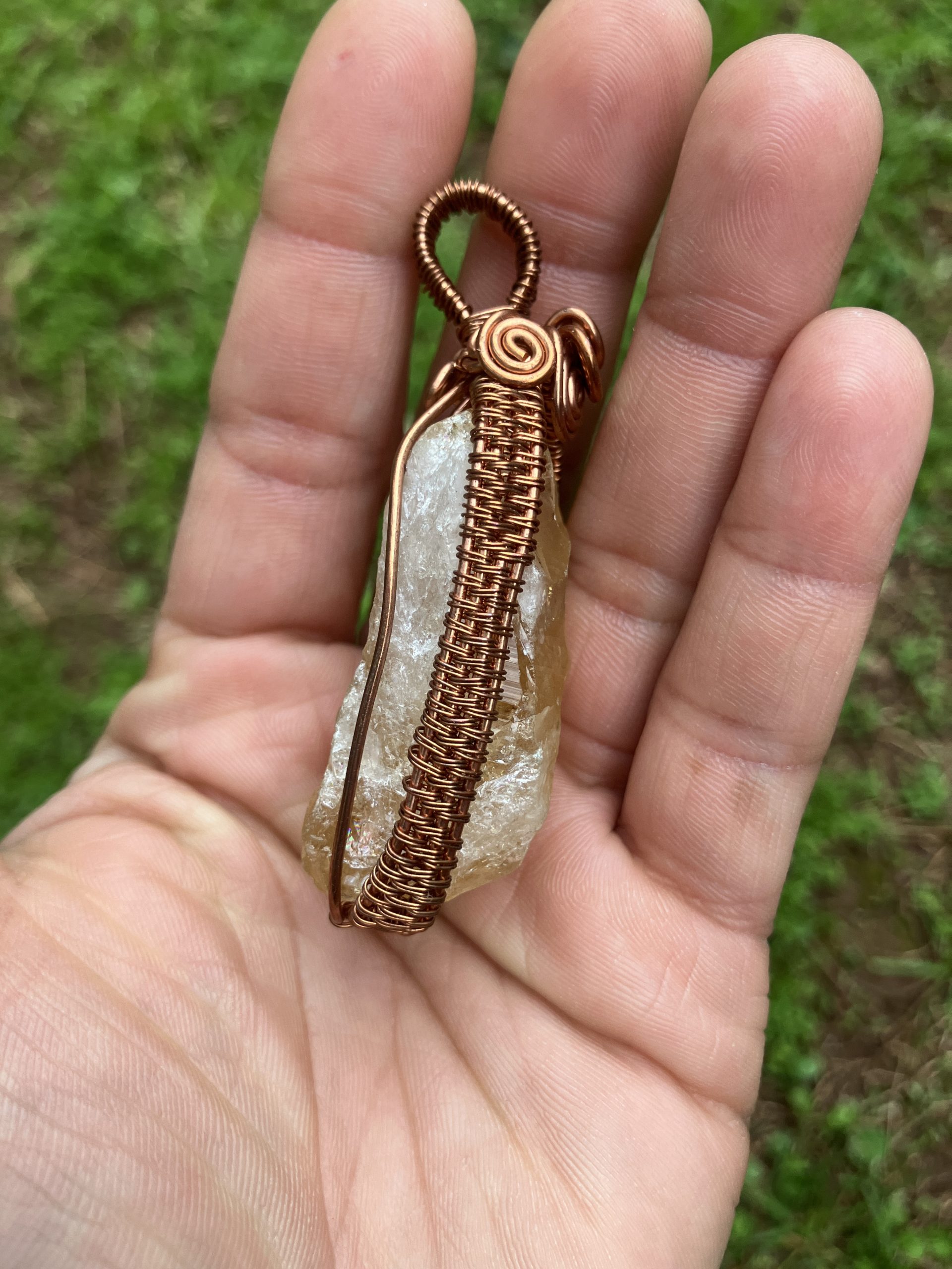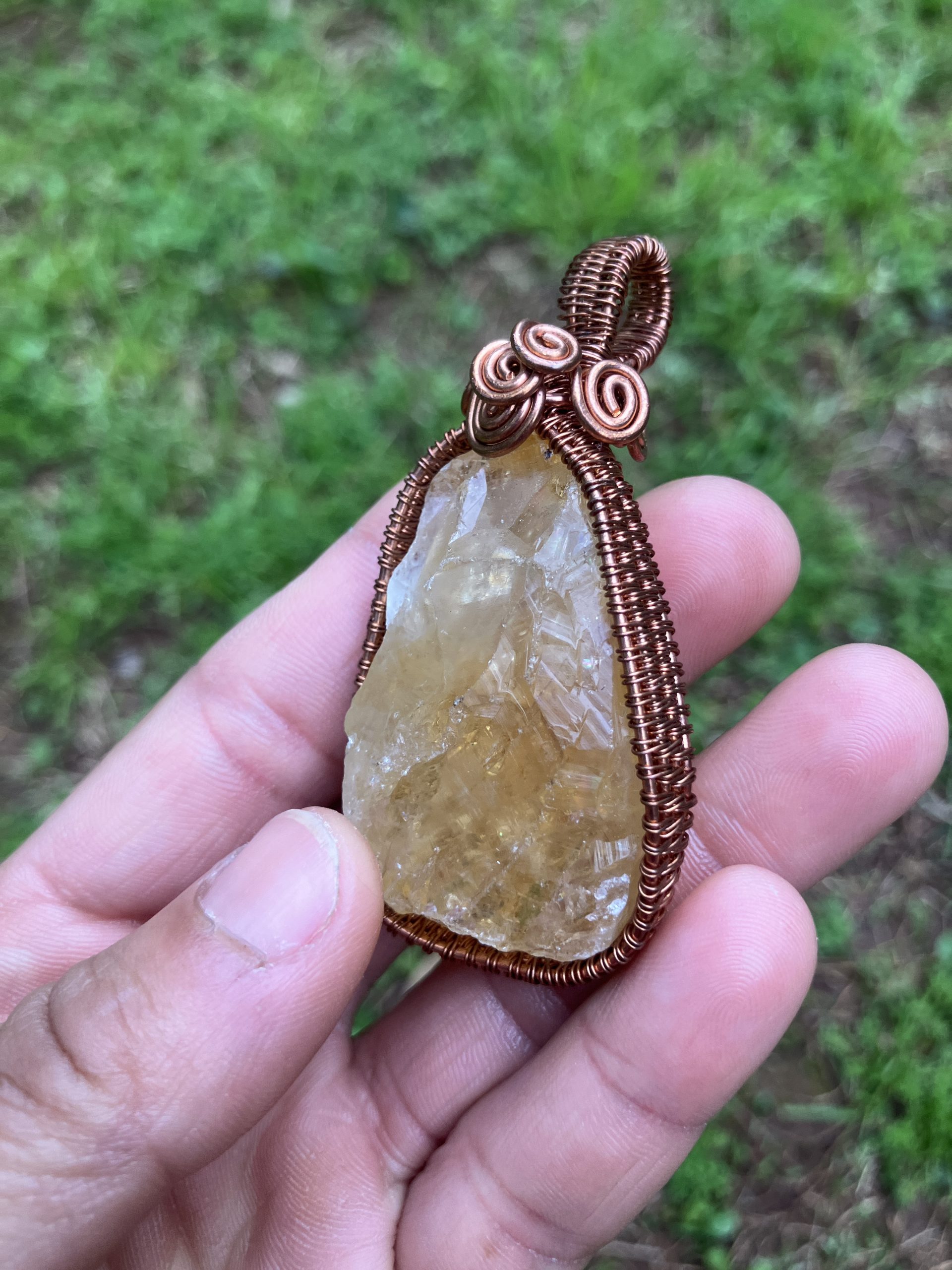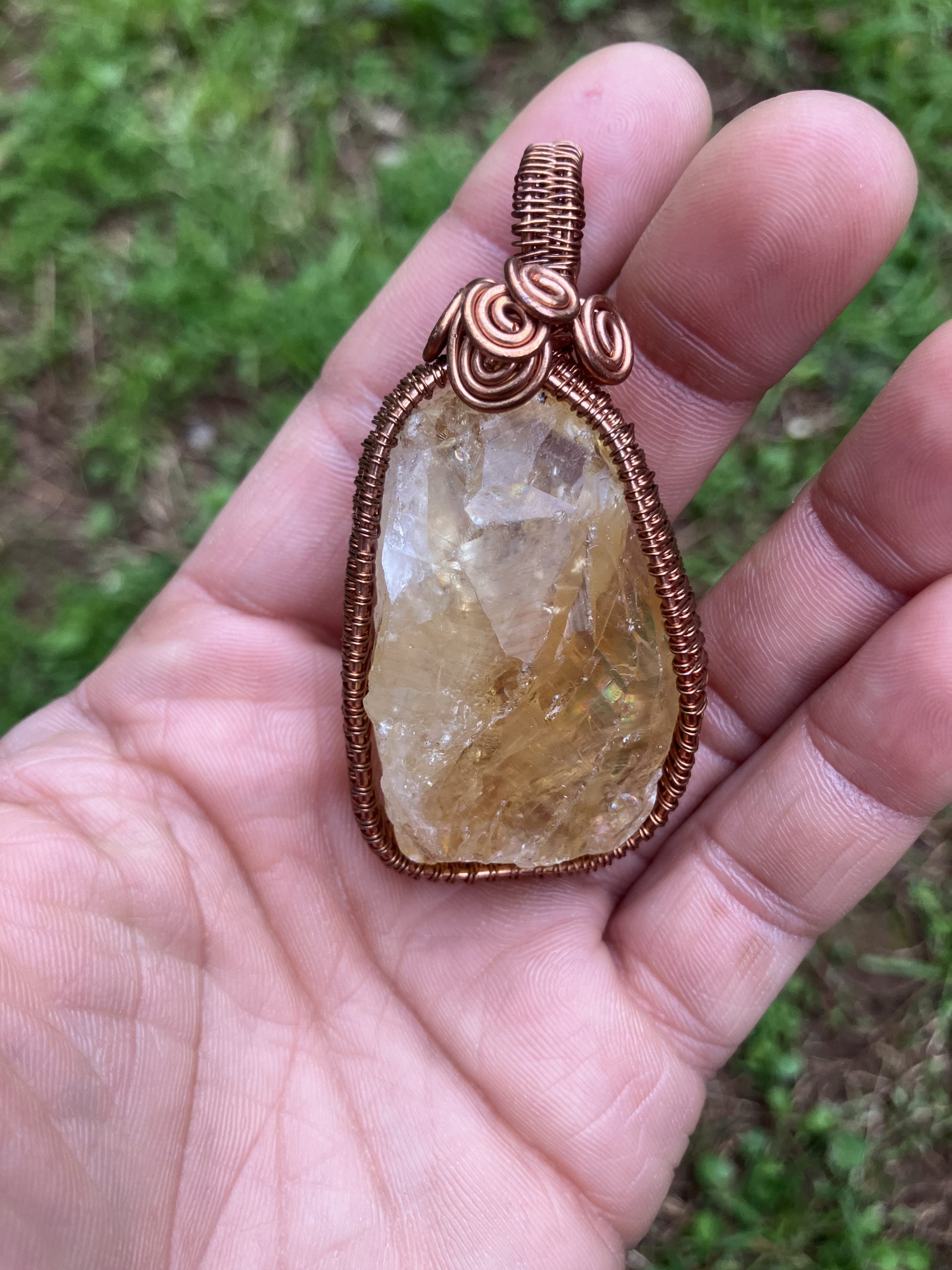 Handmade copper necklace with Heat Treated Amethyst, commonly known as “Citrine” Comes with a 17-inch black necklace string.